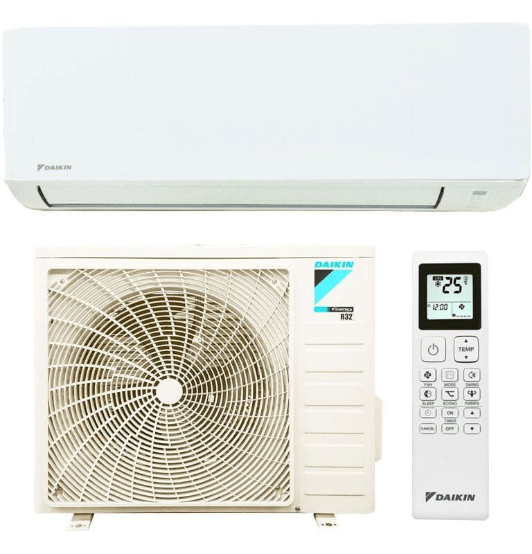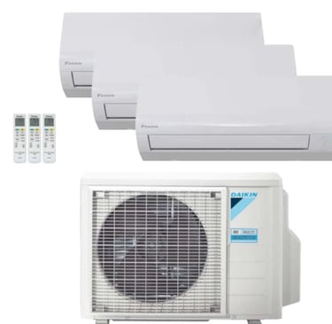 Description du produit : Le climatiseur Daikin Sensira Dual Split 9000+12000 BTU R-32 Inverter représente une option efficace et silencieuse, parfaite pour deux pièces de tailles variées. Ce système réversible fournit du rafraîchissement durant l'été et du chauffage en hiver, tout en assurant un confort acoustique remarquable avec un niveau sonore d'à peine 20–21 dB(A) en mode silencieux. Il est doté d'un compresseur hermétique Swing et emploie le réfrigérant R-32, qui est plus respectueux de l'environnement.